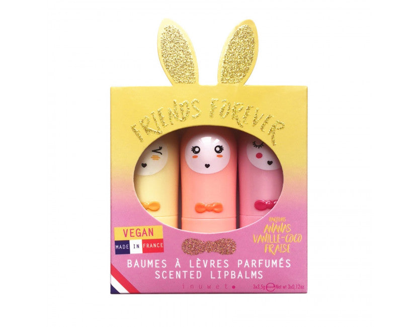 Inuwet Vegan Lip Balm Set Coco Pineapple - Cotton Vanilla - Strawberry 3x3.5g